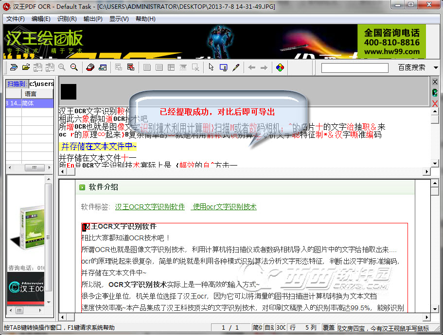 漢王ocr文字識別軟件提取圖片中的文字方法