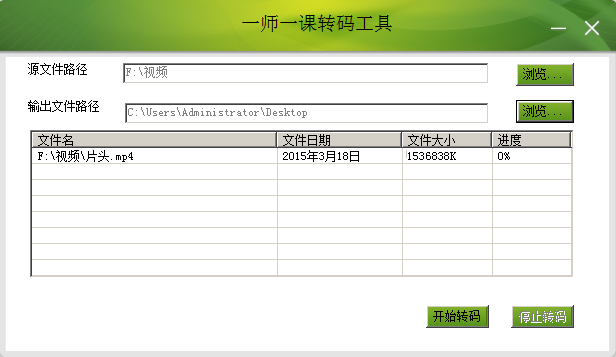 這個(gè)軟件操作比較簡(jiǎn)單,選擇“源文件”和“輸出文件路徑”,“開始轉(zhuǎn)碼”,OK。這個(gè)軟件轉(zhuǎn)換好的視頻就可以上傳到“曬課”平臺(tái)了。