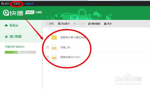 進入之后大家可以直接來到私有云模塊看自己搜藏的電影視頻。