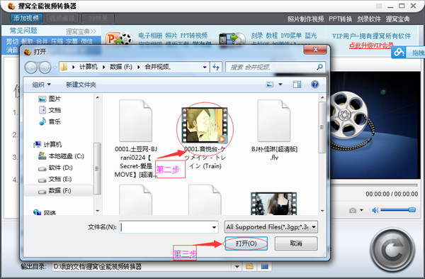 按操作指示選擇了第一個(gè)視頻后,現(xiàn)在來選擇第二個(gè)要合并的視頻,后續(xù)添加照樣操作。(如圖)