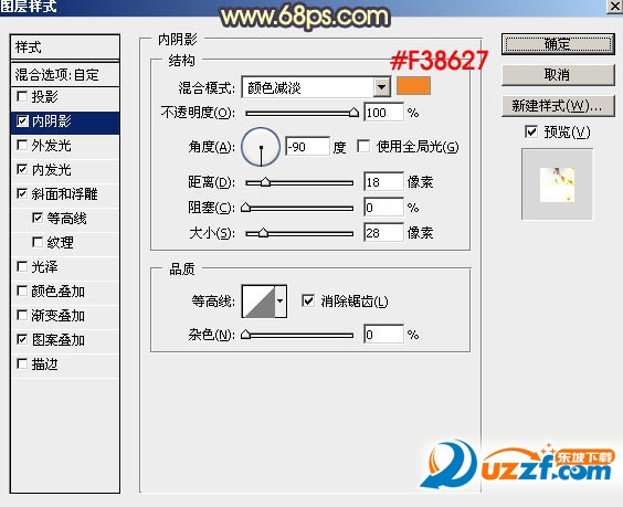 內(nèi)陰影:顏色為橙黃色:#f38627,其它設(shè)置如下圖
