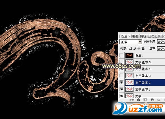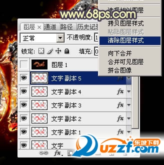 14、按Ctrl + J 把當(dāng)前圖層復(fù)制一層,得到“文字副本5”圖層,然后右鍵選擇“清除圖層樣式”,效果如圖41。