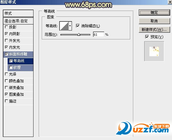 15、雙擊圖層面板當(dāng)前圖層縮略圖調(diào)出圖層樣式,設(shè)置參數(shù)。