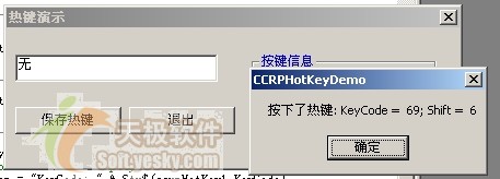 選中一個(gè)熱鍵后,點(diǎn)擊“保存按鈕”,再按下剛保存的熱鍵,程序就會(huì)彈出對(duì)話框(如圖5),演示成功!