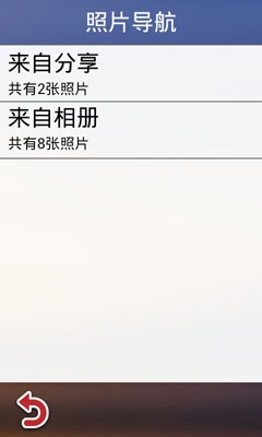 第二步:當我們將拍好的照片存入手機里以后,我們就可以打開任我游戶外導航軟件了,進入照片導航菜單,里面有2個選項:來自分享和來自相冊;來自分享是用來保存從微薄上下載下來的照片的文件夾,來自相冊是用來保存我們手機相機中的照片。