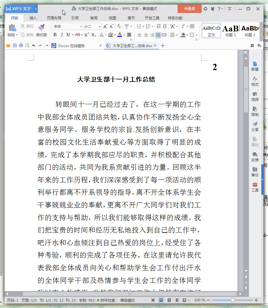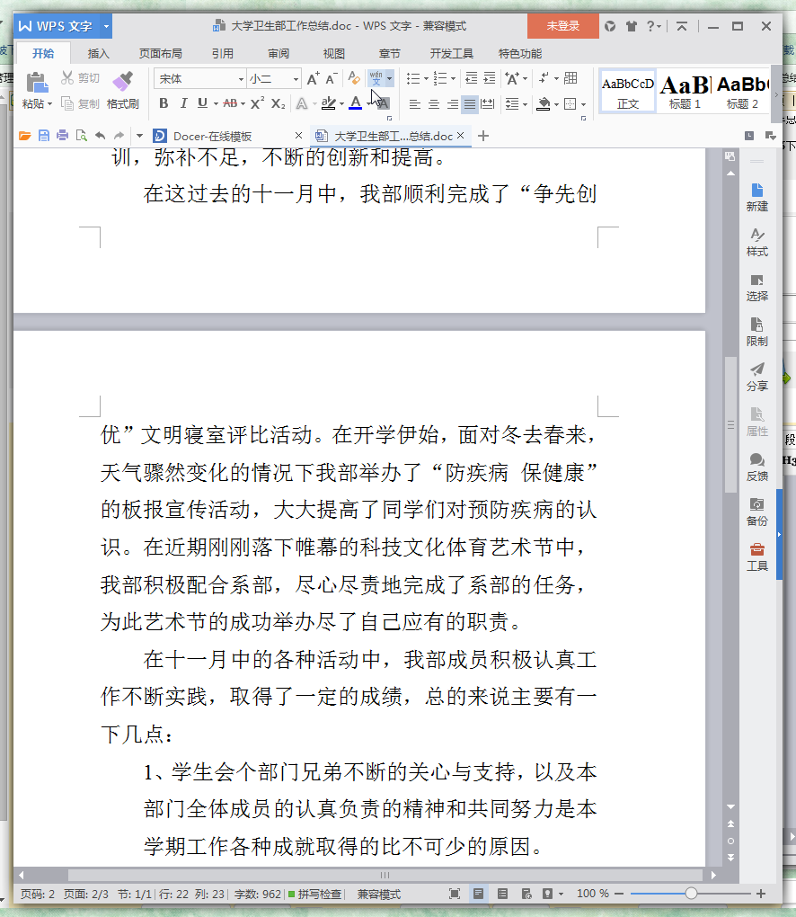 大學(xué)衛(wèi)生部十一月工作總結(jié)范文預(yù)覽