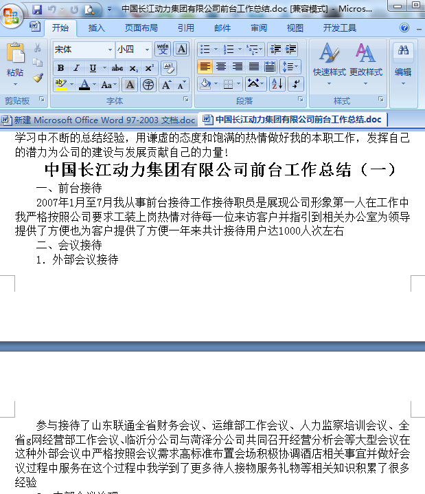 今天小編給大家分享的是中國長江動(dòng)力集團(tuán)有限公司前臺(tái)工作總結(jié),為doc格式,有需要的朋友可立即下載此文檔。