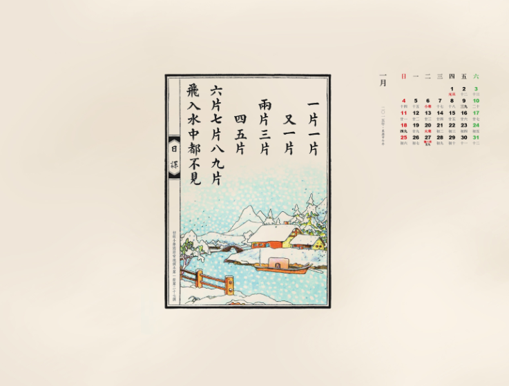 這里分享的是日課2015日歷桌面壁紙,每月一張壁紙,日歷包含農(nóng)歷節(jié)氣,壁紙分為2種尺寸,日課2015月歷1600x1200,日課2015月歷1920x1280,2015年日歷壁紙jpg高清壁紙免費下載。
