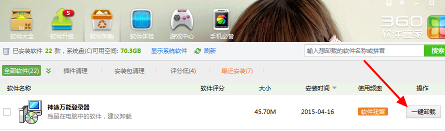 打開360軟件管家,直接點(diǎn)擊【一鍵卸載】即可