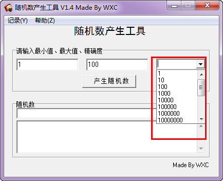 隨機數(shù)產(chǎn)生工具是一款功能強大的隨機數(shù)生成器,支持生成指定范圍內(nèi)的幾乎所有精度的整數(shù)和小數(shù),且支持記錄生成的隨機數(shù),以及將記錄保存至擴展名為rand(隨機數(shù)記錄文件)或txt(文本文件)的文件,讀取已保存的隨機數(shù)記錄,添加已保存的隨機數(shù)記錄。