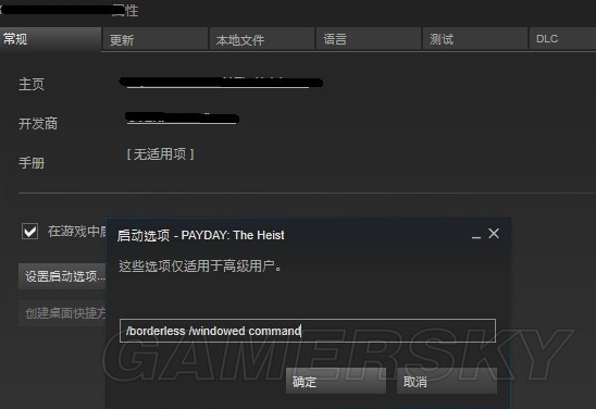 想設(shè)置這個,可以在steam游戲庫中,右鍵游戲?qū)傩,設(shè)置啟動選項(xiàng),輸入/borderless /windowed command。