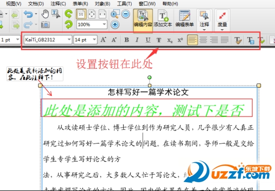 2、文件打開后,單擊工具欄中的“編輯內(nèi)容”按鈕,然后選中需要修改的文字內(nèi)容。