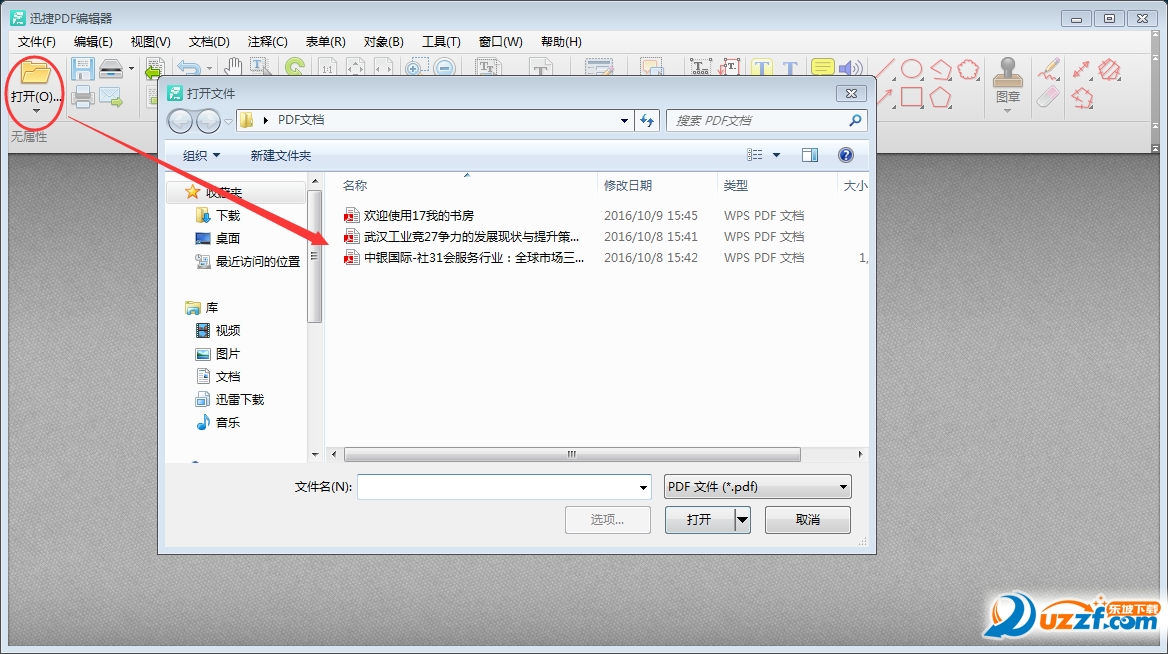 二、點擊軟件界面左上角“打開”按鈕,選擇需要編輯的PDF文件。