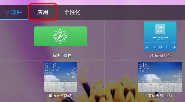 點(diǎn)擊右上角第二個按鈕(小部件)