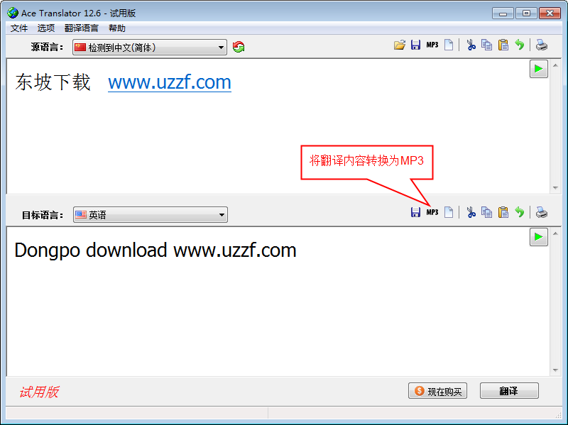 5、可以將翻譯內(nèi)容轉(zhuǎn)換為MP3文件