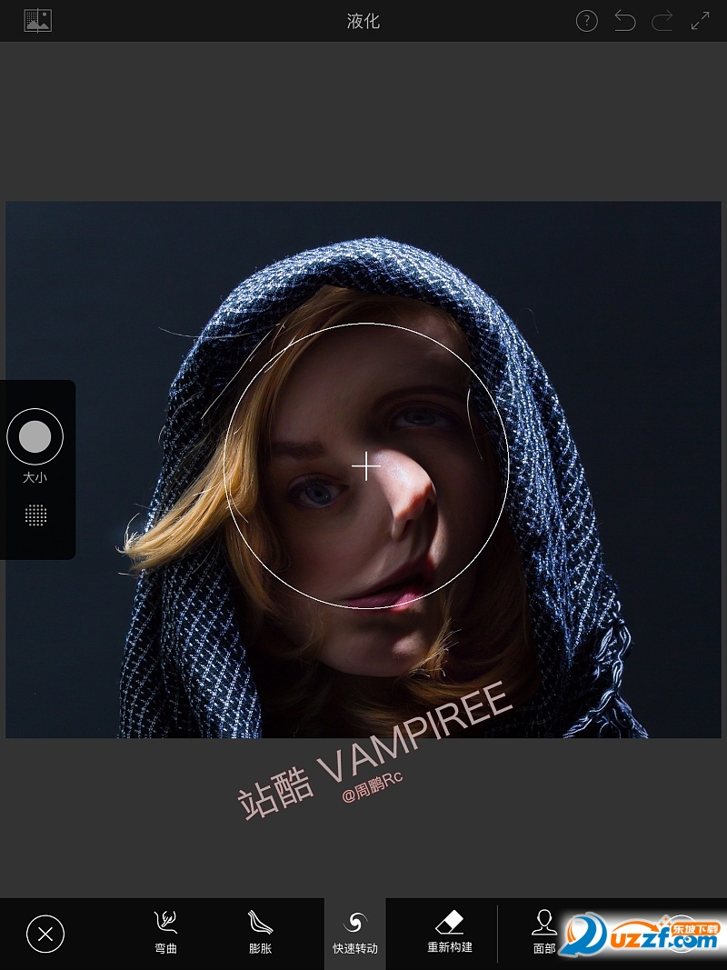 對(duì)照片任意區(qū)域進(jìn)行推、拉、旋轉(zhuǎn)、膨脹或變形等操作,從而獲得細(xì)小或夸張的效果。